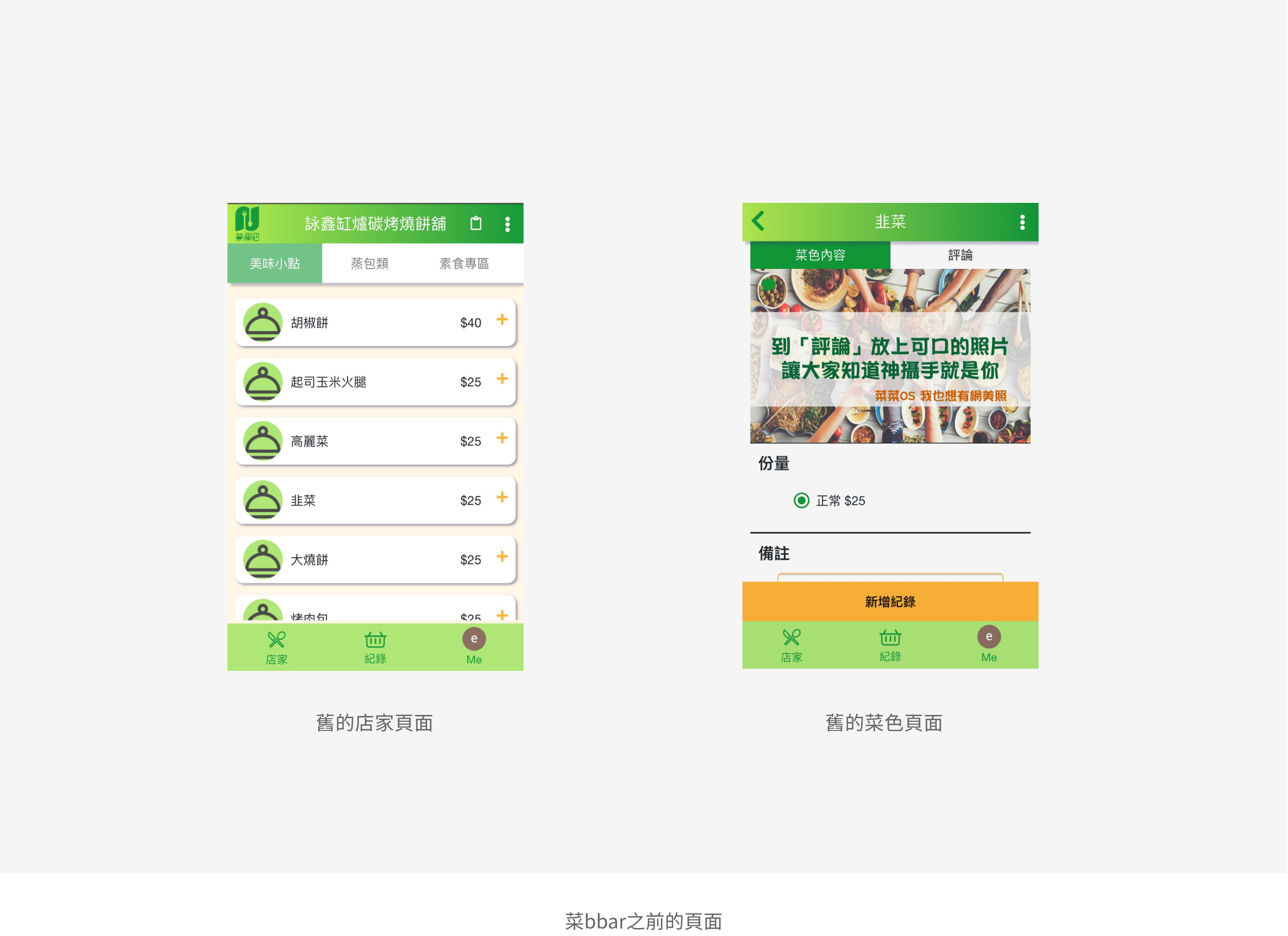 在這邊我會想重新規劃整個風格色系,風格會想要以綠色青菜的顏色,以及人們常常都說會引起食欲的橘色,除此之外店家圖片會以漂亮的菜色吸引年輕人的目光。
