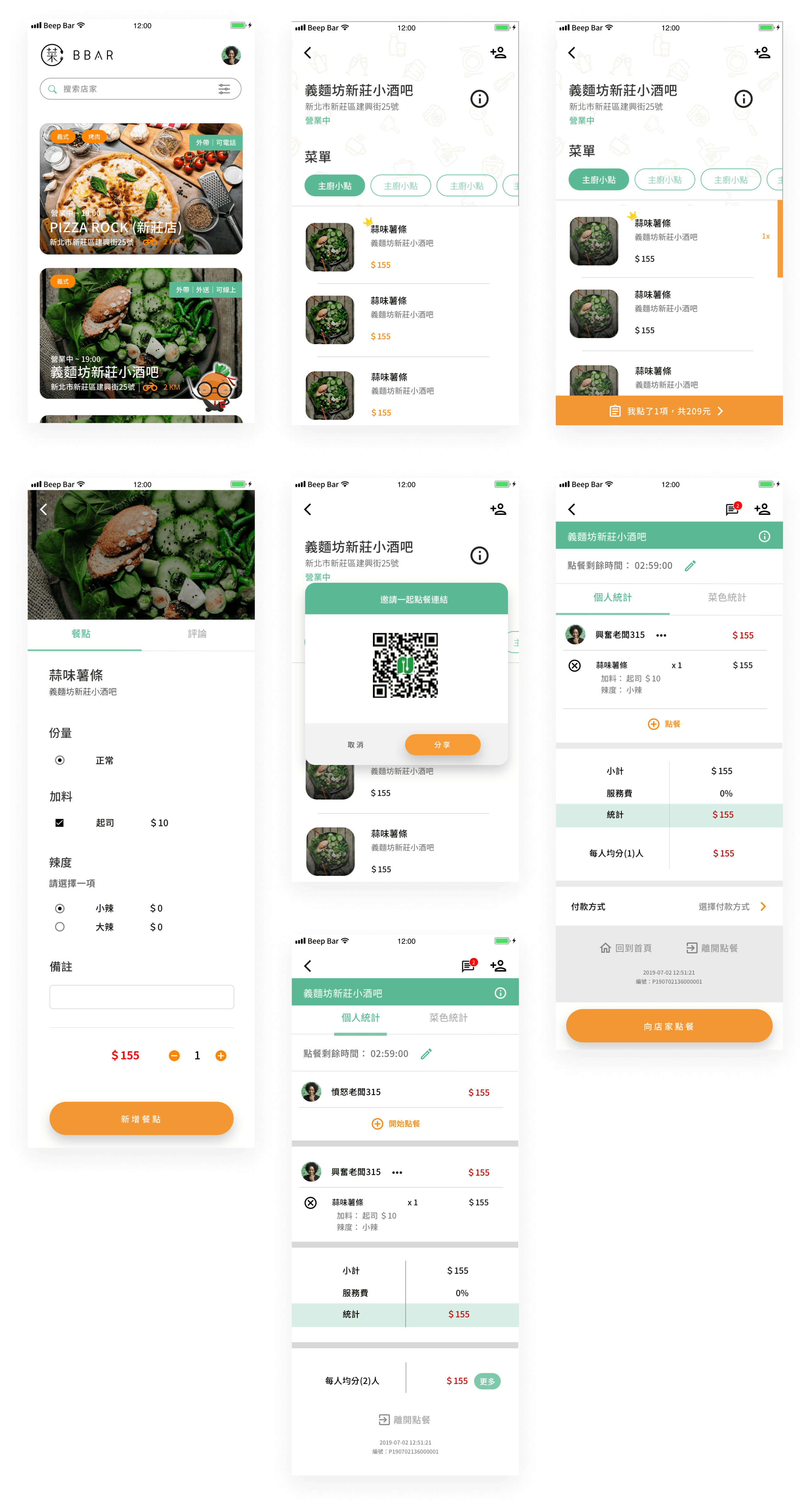 菜BBAR 是一款線上點餐菜單, 代替了傳統式的菜單,使店家和客戶之間用餐、點餐流程更流暢。 菜BBAR 擁有針對用戶和店家的點餐服務系統, 像是客人使用手機或電腦點餐, 店家使用平台或其他設備來接收訂單和後面的作業流程。 用戶可以分別使用內用、外帶、和店家自行外送的用餐方式