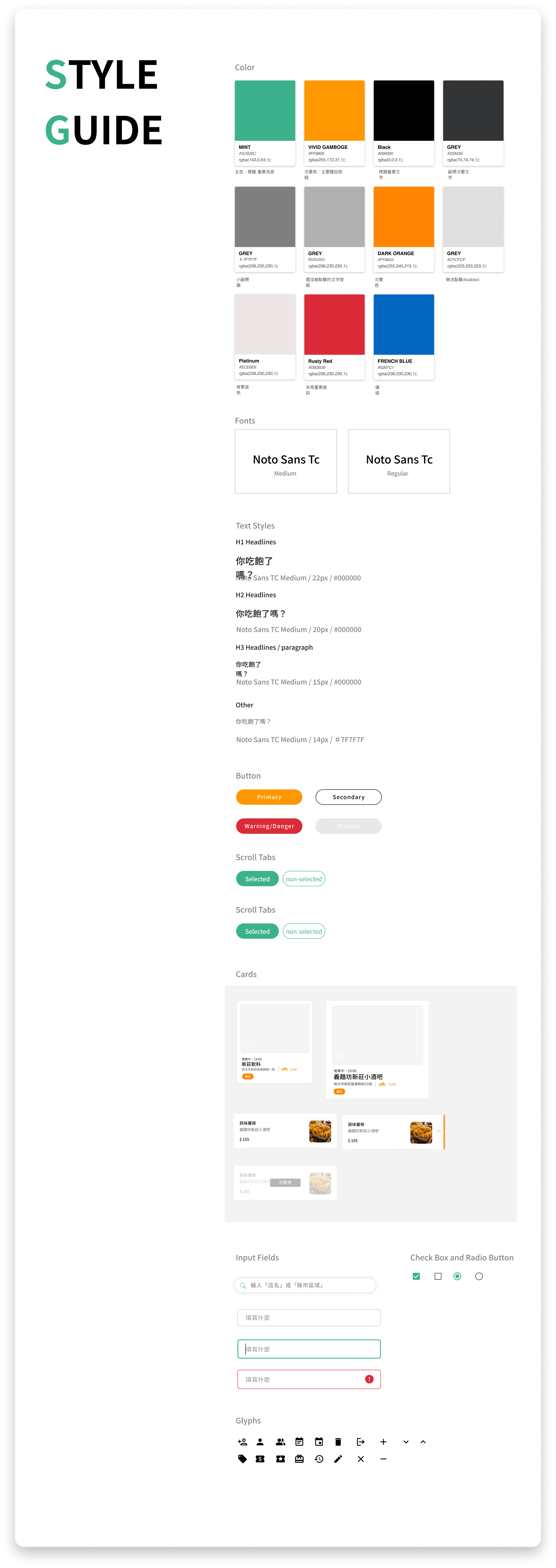 我會定義一個Style guide 讓設計元件可以更加統一, 而且可以快速的管理整個視覺的Component。