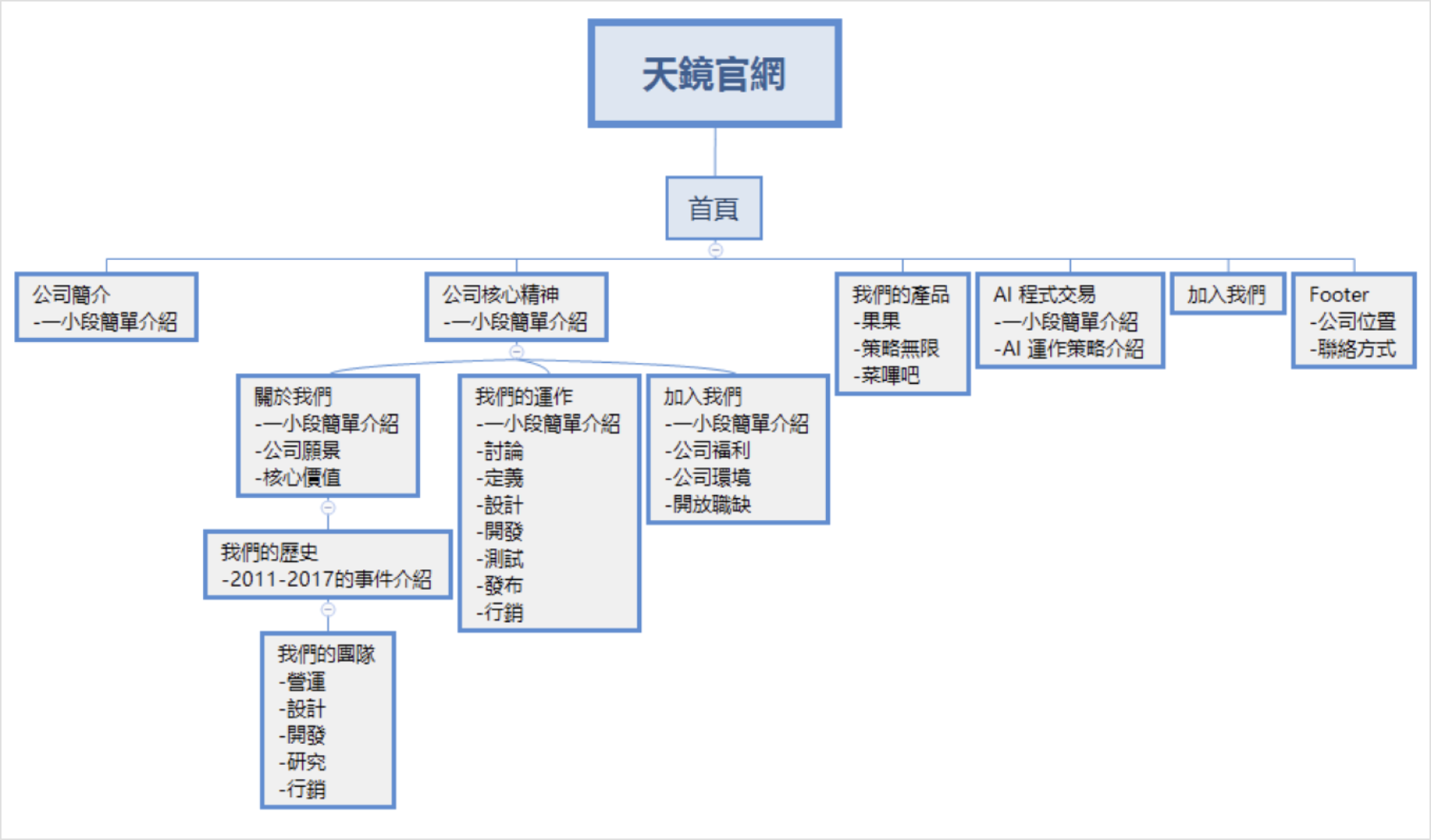 這邊會先規劃和定義我們官網需要的資訊: